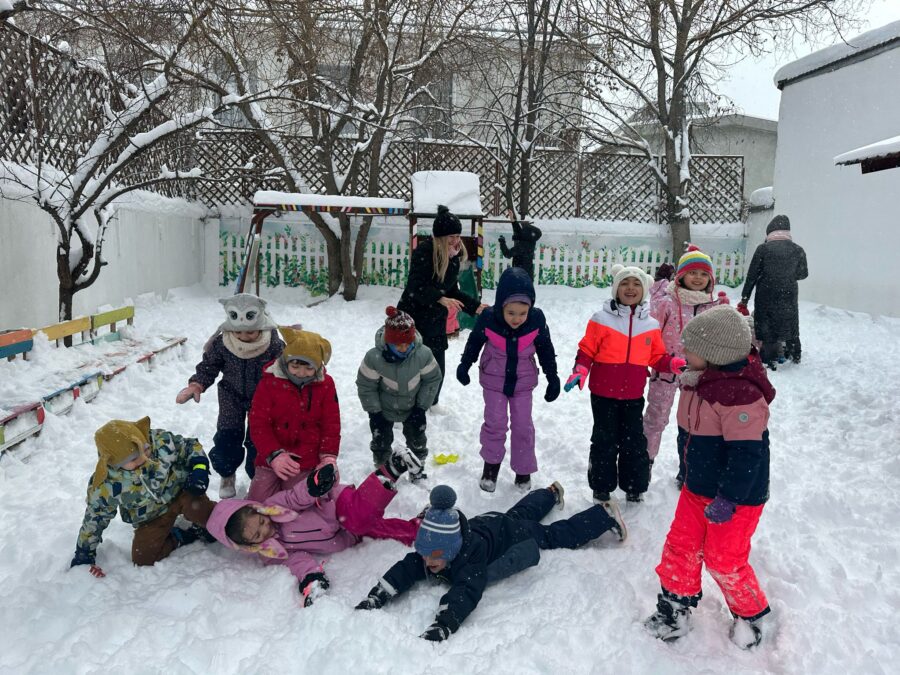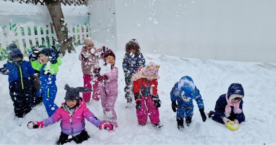 Cu râsete zglobii și o bucurie greu de egalat, ei au început să zburde prin curtea noastră, răstimp în care au și construit o serie de oameni de zăpadă.