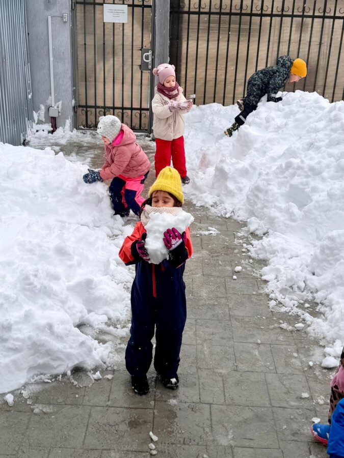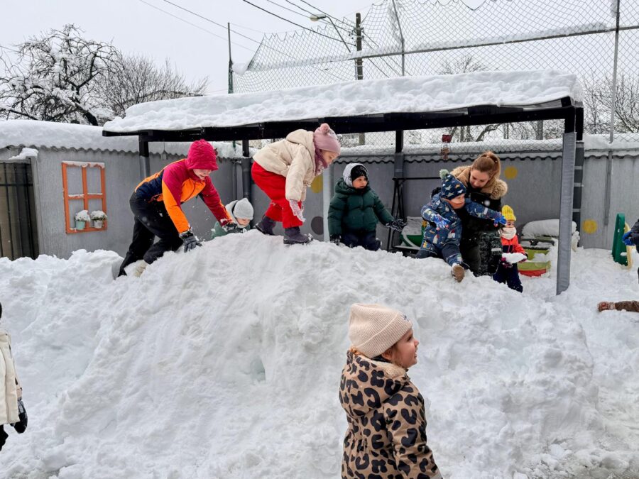 • Toți copiii de la Grădinițele „Arc-en-Ciel” sunt fericiți că a nins din nou – și pentru că se pot bucura de troienele de zăpadă! 18 februarie 2026