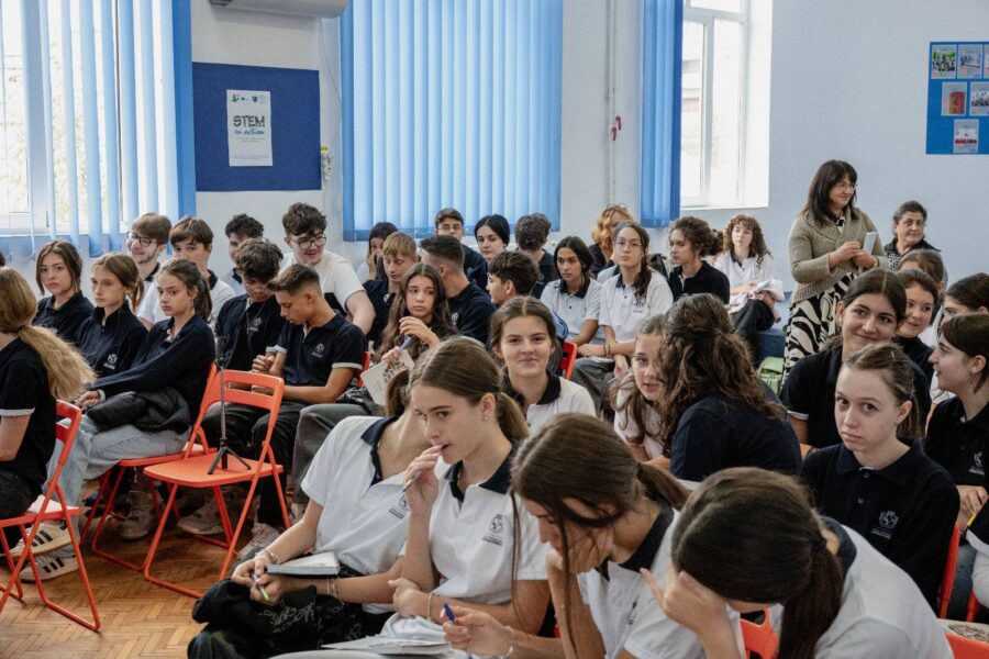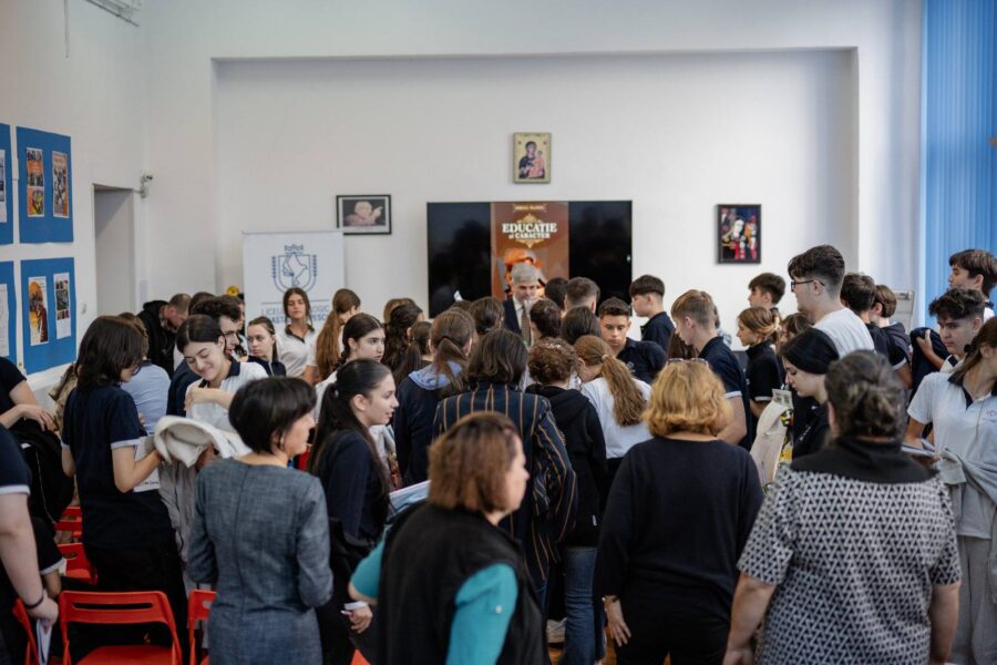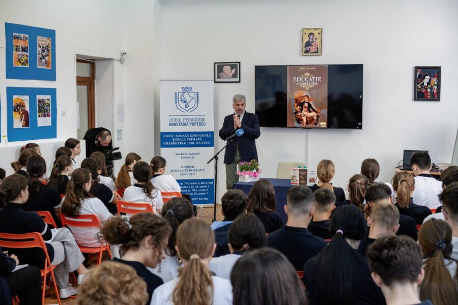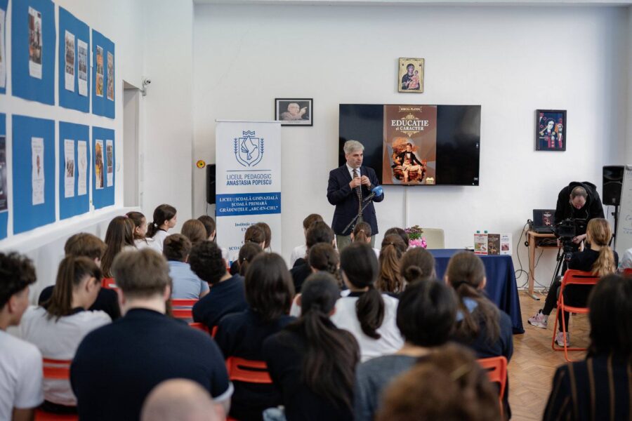 Astăzi am avut privilegiul și bucuria de a-l avea în mijlocul nostru pe scriitorul Mircea Platon. A vorbit cu liceenii despre cum își pot forma caracterul, ce e de fapt caracterul și de ce avem nevoie de el, de faptul că trecutul trebuie înțeles, asumat și folosit pentru a zidi structuri, care să ne facă să rezistăm la bombardamentul stimulilor pe care trebuie să-i decodăm și la asaltul permanentei relativizări. Un discurs plin de miez, de care s-au bucurat deopotrivă elevii și profesorii.