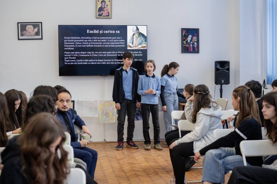 S-au prezentat proiecte, s-au făcut concursuri de matematică, s-a recitat și s-a jucat teatru. Dar, mai ales, s-au cunoscut între ei niște copii buni, cu preocupări frumoase și s-au pus bazele unor prietenii. În scenetă îi puteți admira pe Platon, Socrate, Aristotel și Hypatia.