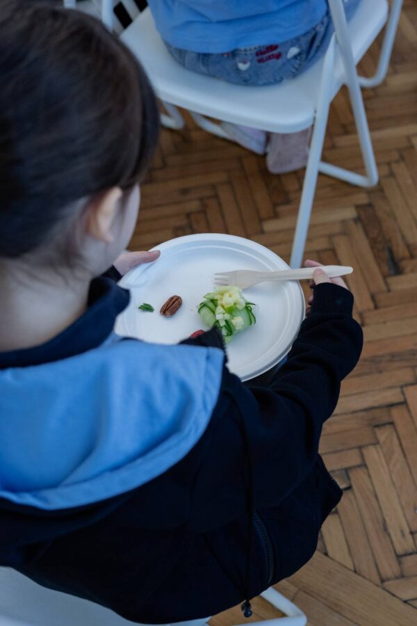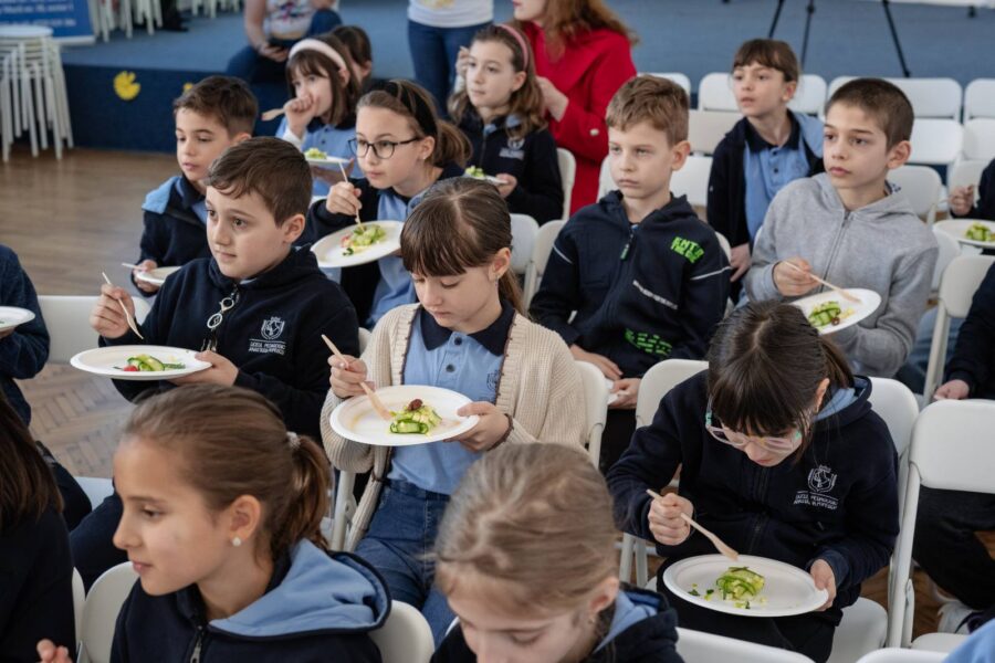 S-a vorbit despre importanța carbohidraților, fibrelor, proteinelor și mineralelor, cum fructele și legumele conțin toate aceste elemente. S-a mai vorbit despre risipă și câte resurse se consumă pentru un fruct care vine din alt continent, iar noi îl aruncăm la gunoi. Chef Liviu Lambrino a avut grijă ca fiecare copil să aibă parte de un buchet de gusturi și culoare.