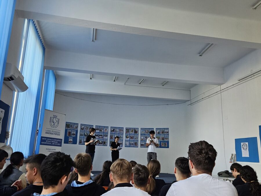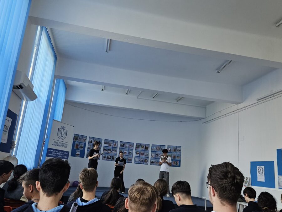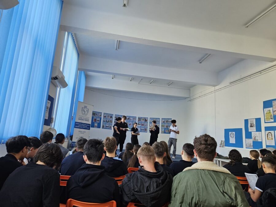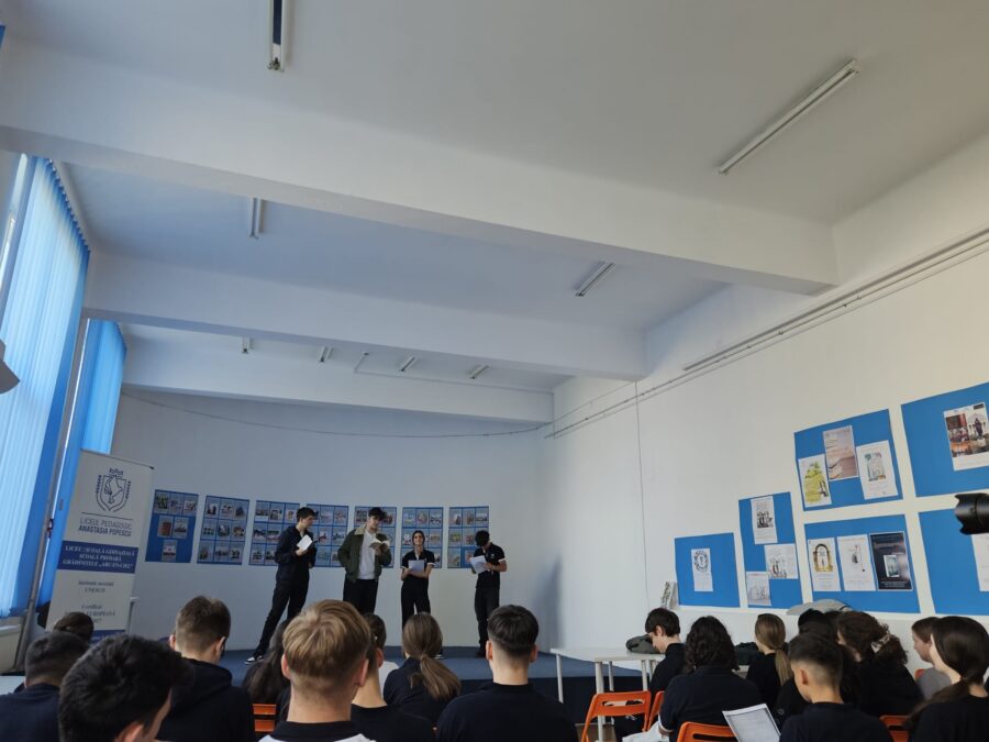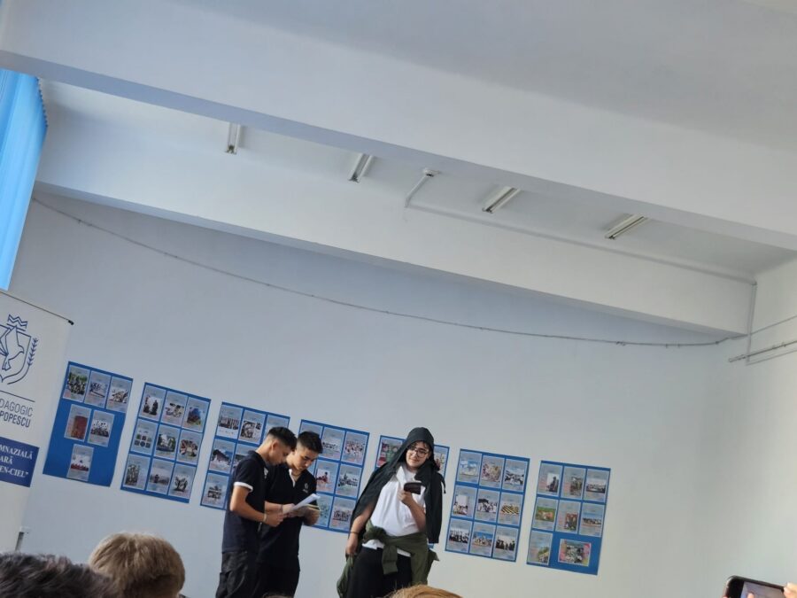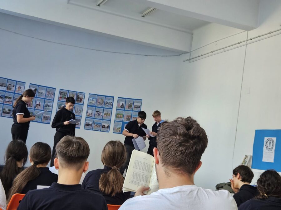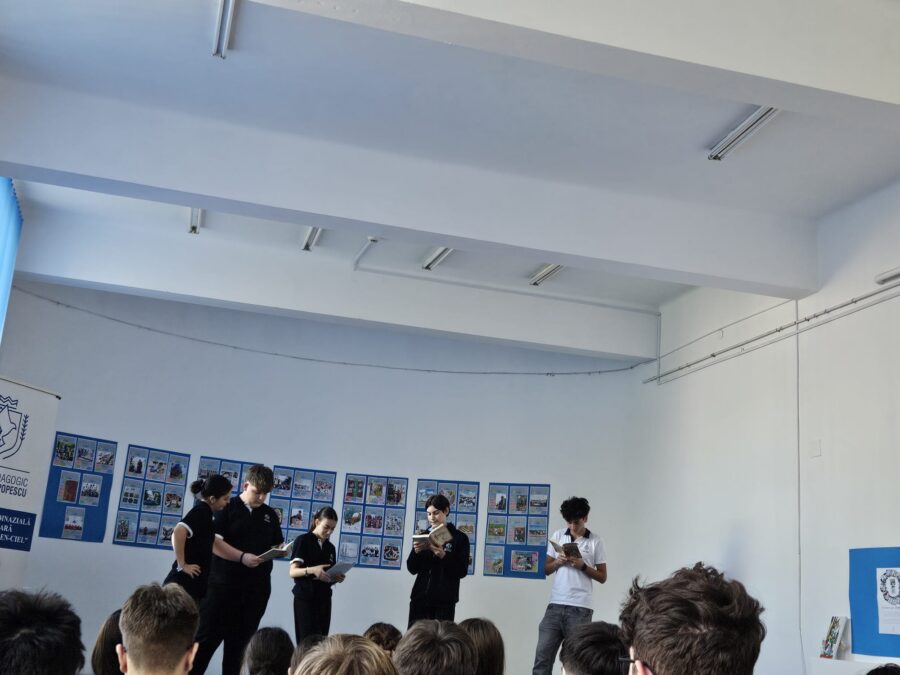 Elevii din clasele a IX-a citesc este chiar un titlu demn de prima pagină a unui cotidian. Doamna profesoară Cătălina Roșu a imaginat aceste ore-atelier, copiii și-au dorit o lectură pe scenă, nu doar „la masă” și, în plus, fiind vorba de „Jocul de-a vacanța” de Mihail Sebastian, au atins, în discuțiile pregătitoare, multe aspecte interesante: textul dramatic, didascaliile, epoca, prejudecățile.