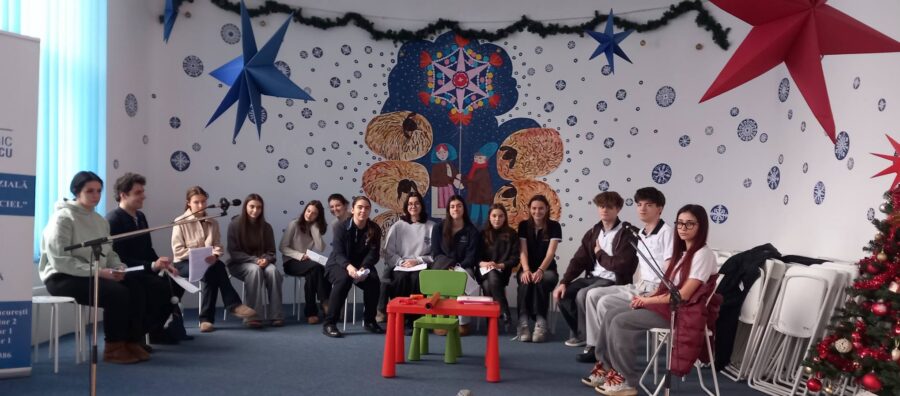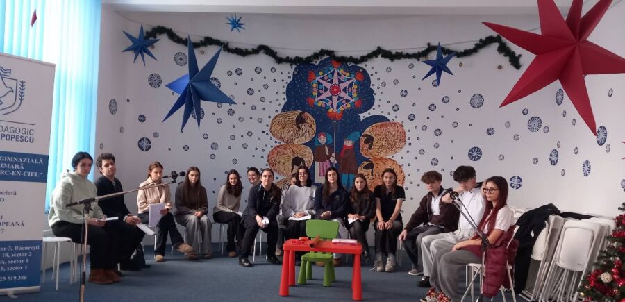 În decorul acesta minunat, pentru care mulțumim catedrei de arte! , se „coc” serbările celor mici, dar și a celor mari, fiindcă vorba cântecului „celor mari, celor mici, le e drag tuturor, în Lumea Poveștilor”, și acum, în preajma Nașterii Domnului, trăim cu toții o stare de poveste…