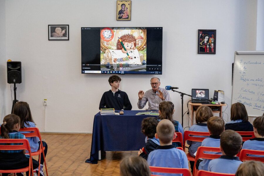 Poezie, bucurie, copilărie! Merg bine împreună și transformă orice zi mohorâtă într-una cu soare și culoare. Ilustrația poeziilor inspirate semnate de Marius Mărăcinescu este asigurată cu talent de neobositul nostru elev Iacob Pisoiu, care a ajuns iată, la cel de-al treilea volum de ilustrații, deși este abia în clasa a X-a!