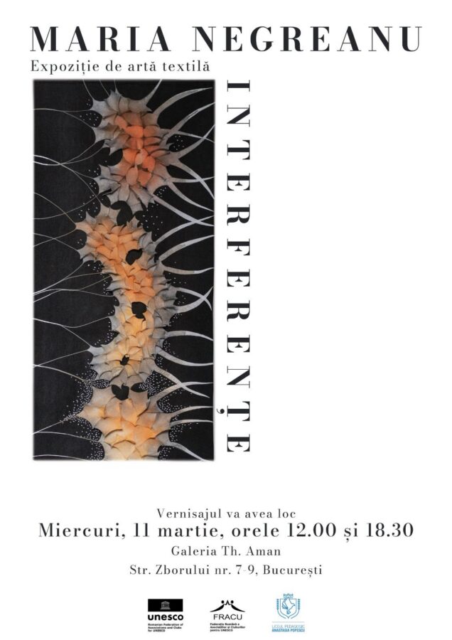 Vernisajul va avea loc miercuri, 11 martie, orele 12.00 și 18.30 în sediul nostru din sectorul 2, str. Zborului nr. 7-9, Galeria „Th. Aman”.