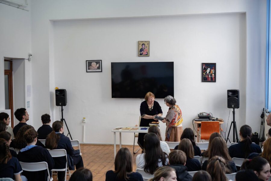 și Bianca Constanda din clasa a XI-a „Lacul” (de menționat că recitarea s-a petrecut ad-hoc, copiii nefiind anunțați în prealabil, și nepregătindu-se „special”) iar, la sfârșitul întâlnirii, o parte din cor, sub conducerea Carlei Andrei, a atacat cu succes partitura pe versurile poeziei „Somnoroase păsărele”.