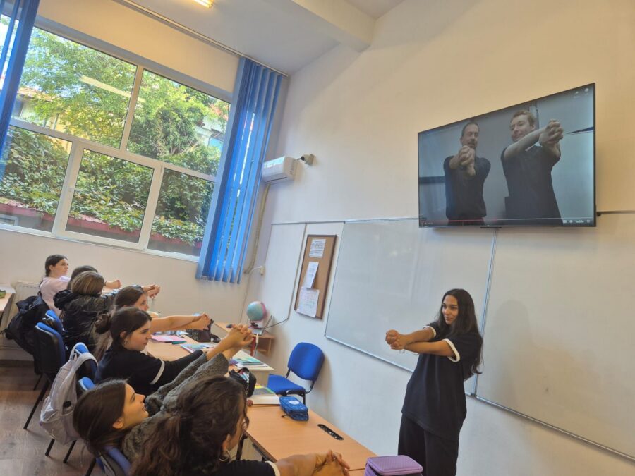 Elevii de liceu au aflat azi că există un salut internațional al matematicii! James Tanton, inițiatorul proiectului Exploding Dots, ne-a învățat cum să îl facem. Nu încercați asta în mijloacele de transport în comun, oricât de matematician ați fi! Deci, iată-l: