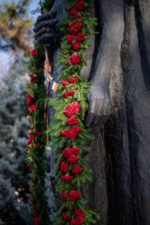 De 13 ani, Ana Blandiana ne-a fost alături în această acțiune de depunere a „șarpelui” de garoafe pe umerii poetului, fiindcă acest gest are la bază o narațiune din „Fals tratat de manipulare”, volum apărut în primă ediție în 2013. Gestul a fost preluat ulterior de Liceul nostru, la inițiativa doamnei director Monica Șerbănescu, cea care este „vinovată” de această istorie și care o orchestrează de 13 ani, cu succes.